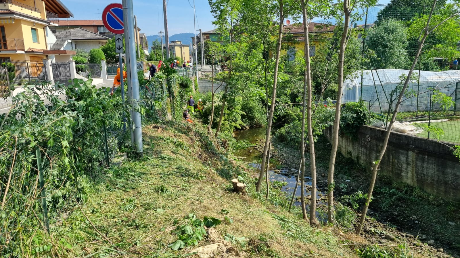 L'intervento consisteva nel liberare il letto della roggia che attraversa il piccolo comune bergamasco dalla vegetazione che ne aveva preso il sopravvento. L’intervento, già rinviato a causa del maltempo, sembrava destinato a venir nuovamente posticipato, dato che la pioggia persisteva fino al punto di ritrovo. Decisi a portare a termine l'attività, i vari Nuclei hanno raggiunto i cantieri di lavoro e, con un tempo più o meno clemente, i lavori sono finalmente iniziati.