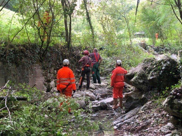 Come sempre, si lavora a stretto contatto con altri nuclei. Ci coordiniamo per settori in modo da lavorare e portare a termine in tutta sicurezza l’intervento, scambiando opinioni sul cosa fare, come farlo e che attrezzature usare. La cosa interessante è appunto osservare come lavorano gli altri nuclei, come si muovono e soprattutto come usano le loro attrezzature: ogni volta si impara qualcosa di nuovo. I lavori che solitamente siamo chiamati a fare sono di messa in sicurezza e ripristino di sentieri, liberare torrenti da detriti e arbusti, e taglio piante dove necessario.