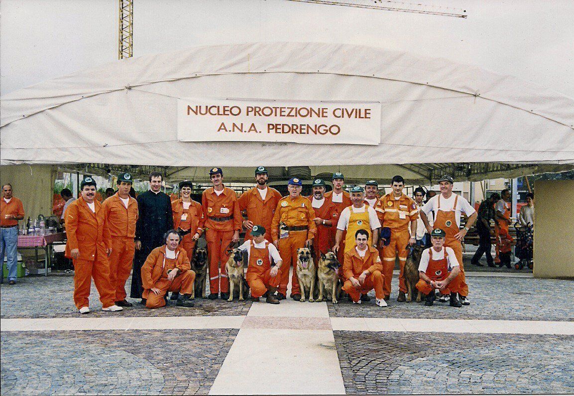 Nel 1976 l'Associazione accolse l'accorato appello dell'allora presidente nazionale Franco Bertagnolli per soccorrere la popolazione friulana colpita da un disastroso terremoto: anche in questo frangente gli alpini si misero a disposizione. A seguito dei terremoti che colpirono la penisola da lì al 1980, il presidente della Repubblica Sandro Pertini decise di istituire il Ministero della Protezione Civile, ufficializzato con il DPCM del 22 giugno 1982. Sulla scia di questa iniziativa di governo l'A.N.A. (Associazione Nazionale Alpini) si mobilitò nell'organizzazione di una sua struttura capace di affiancare la struttura governativa negli interventi di soccorso. Il gruppo alpini di Pedrengo non fu da meno e, forte dell'esperienza maturata, si attivò e diede vita al proprio nucleo di Protezione Civile, che fece la sua prima uscita ufficiale in quel di Cisano Bergamasco, il 12 aprile 1987; dopodiché fu ufficializzata la sua esistenza come nucleo di Protezione Civile di Pedrengo. Come primo responsabile del nucleo fu nominato